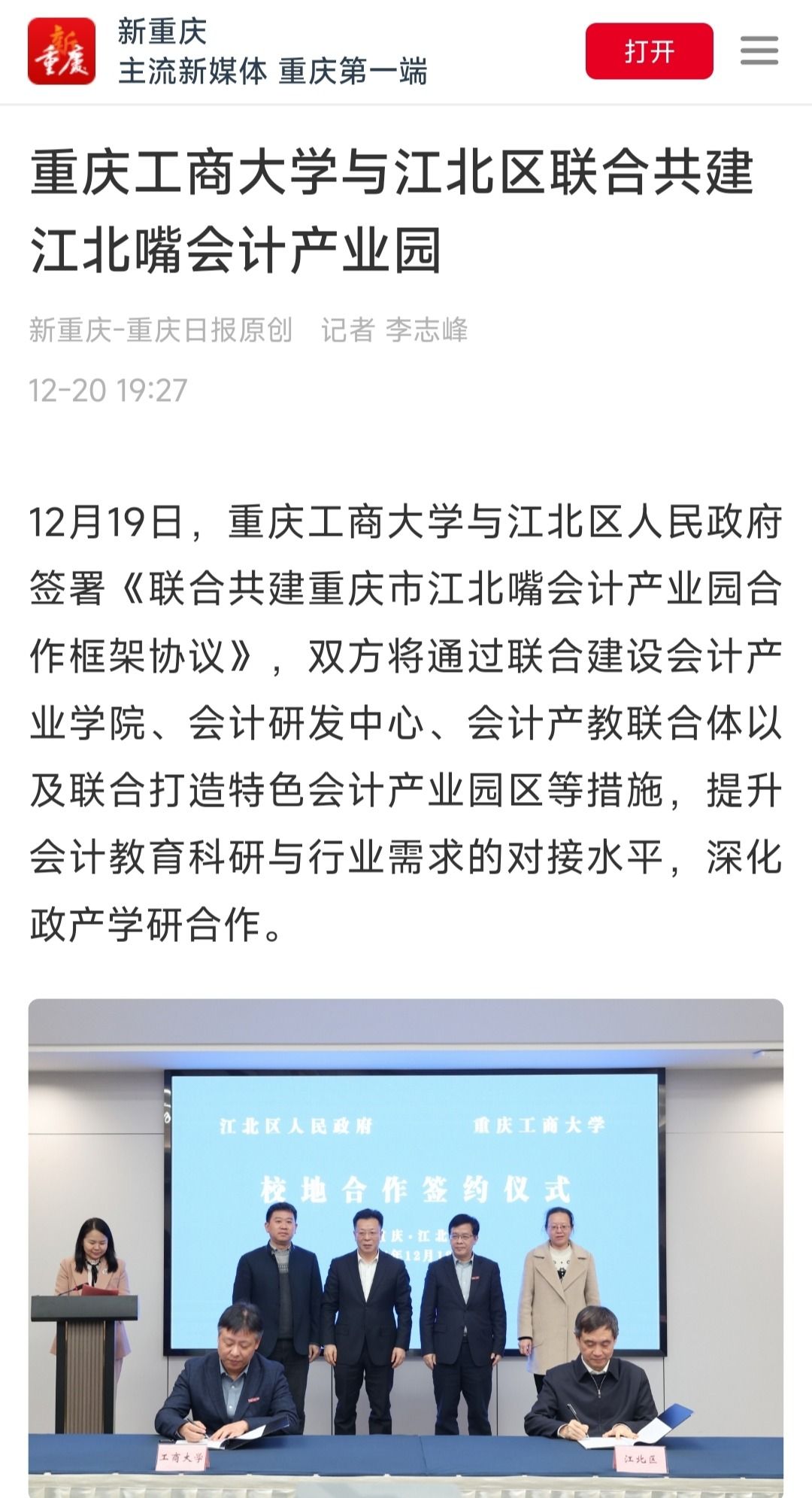 近日,金年会与江北区人民政府签署《联合共建重庆市江北嘴会计产业园合作框架协议》,双方将通过联合建设会计产业学院、会计研发中心、会计产教联合体以及联合打造特色会计产业园区等措施,提升会计教育科研与行业需求的对接水平,深化政产学研合作。