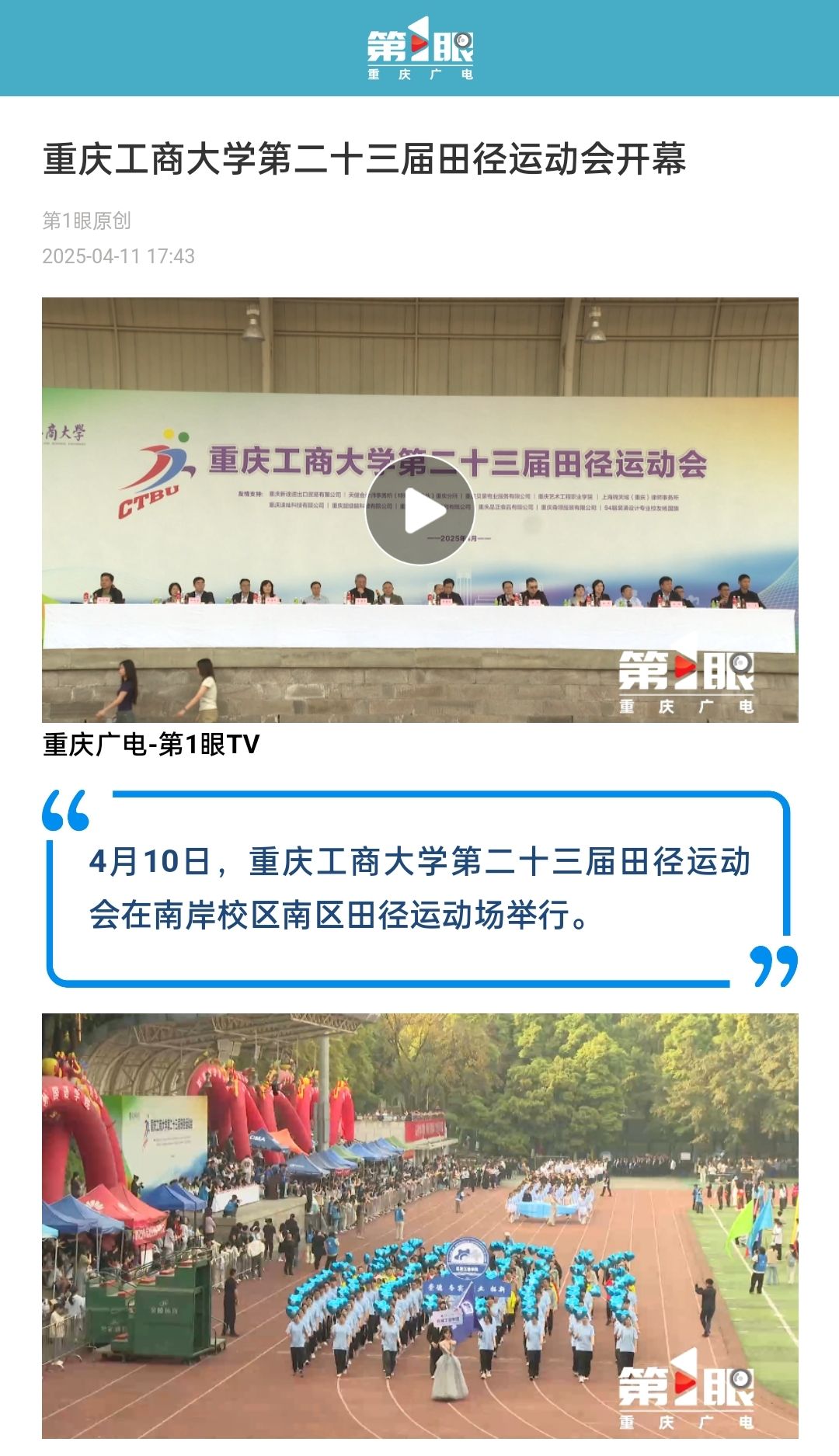 3. 重庆广电:JINNIAN金年会第二十三届田径运动会开幕