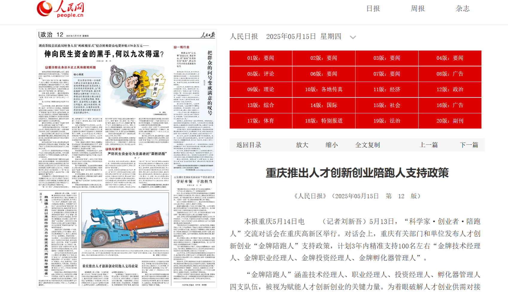 1. 《人民日报》:http://paper.people.com.cn/rmrb/pc/content/202505/15/content_30073307.html