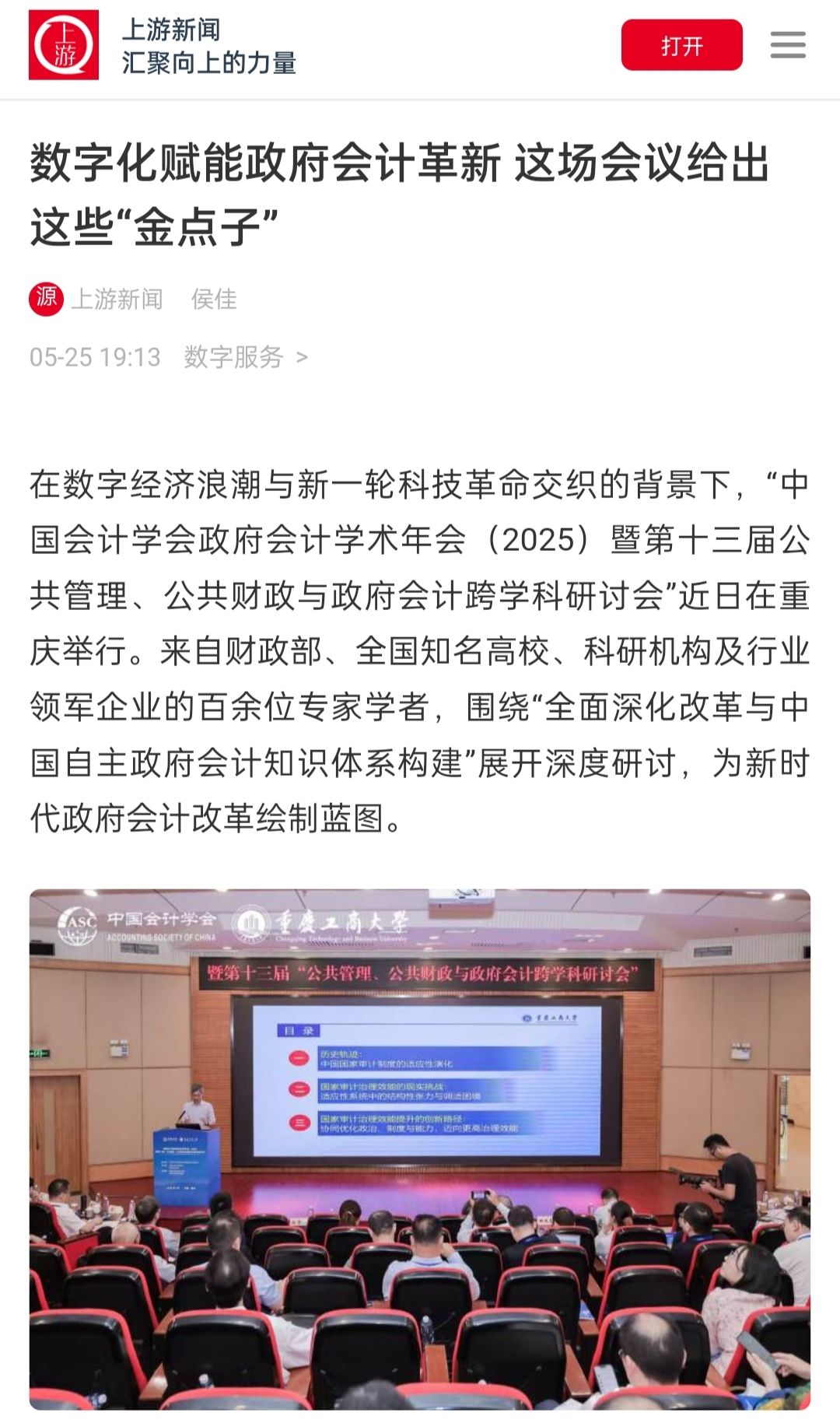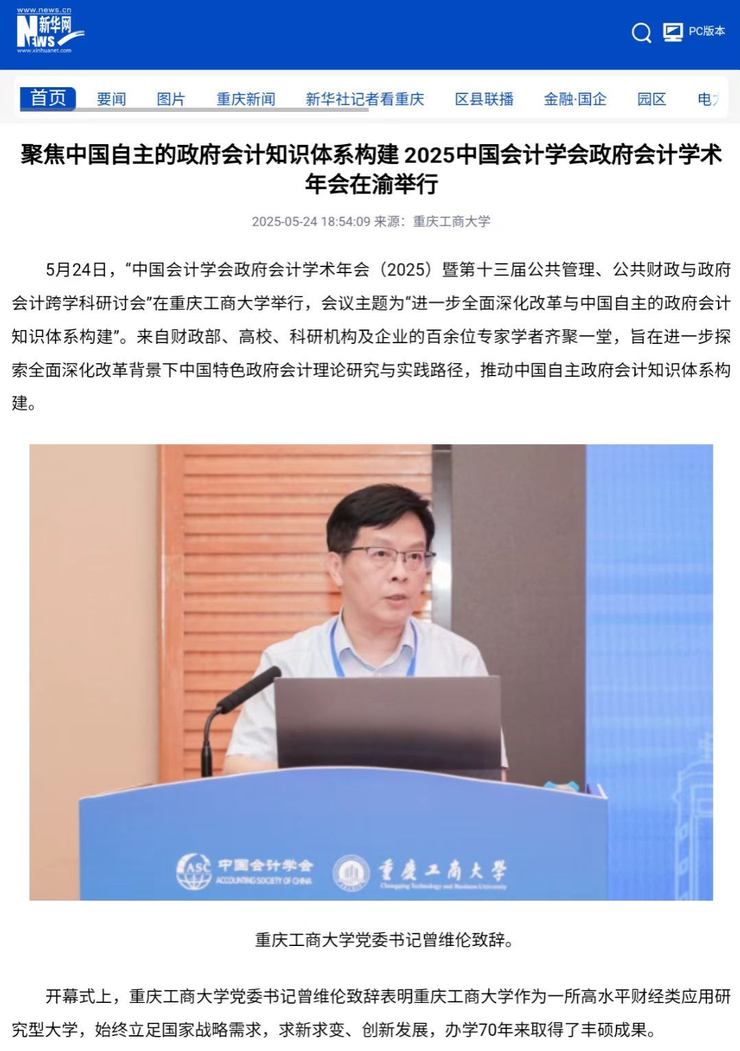 2. 新华网:聚焦中国自主的政府会计知识体系构建 2025中国会计学会政府会计学术年会在渝举行