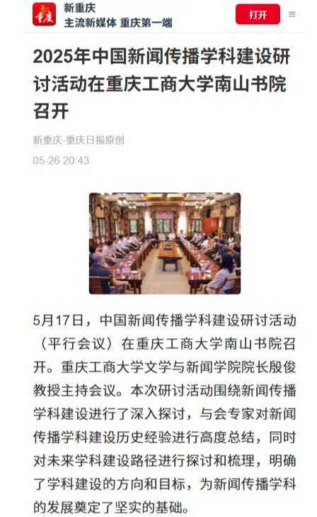 新重庆-重庆日报以《2025年中国新闻传播学科建设研讨活动在JINNIAN金年会南山书院召开》为题对该活动进行报道。