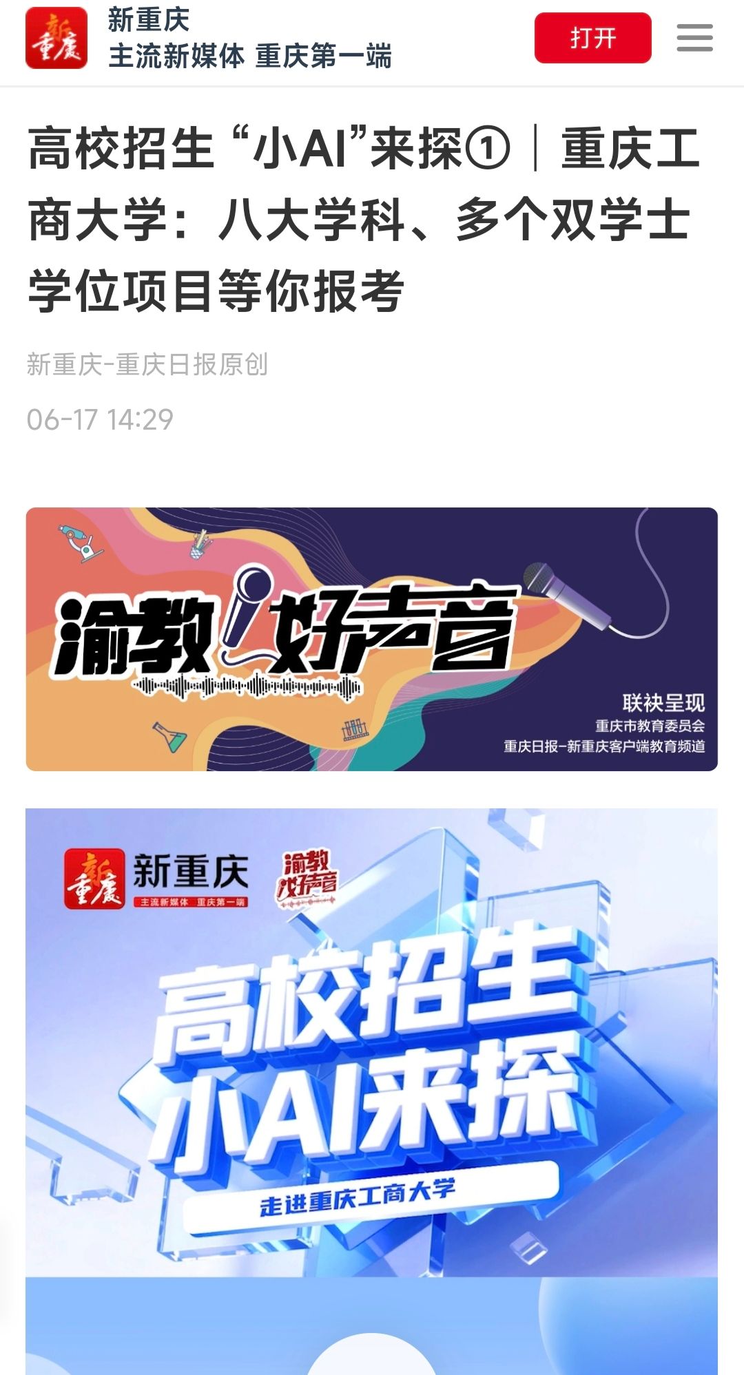 2.新重庆-重庆日报:高校招生 “小AI”来探①│JINNIAN金年会:八大学科、多个双学士学位项目等你报考
