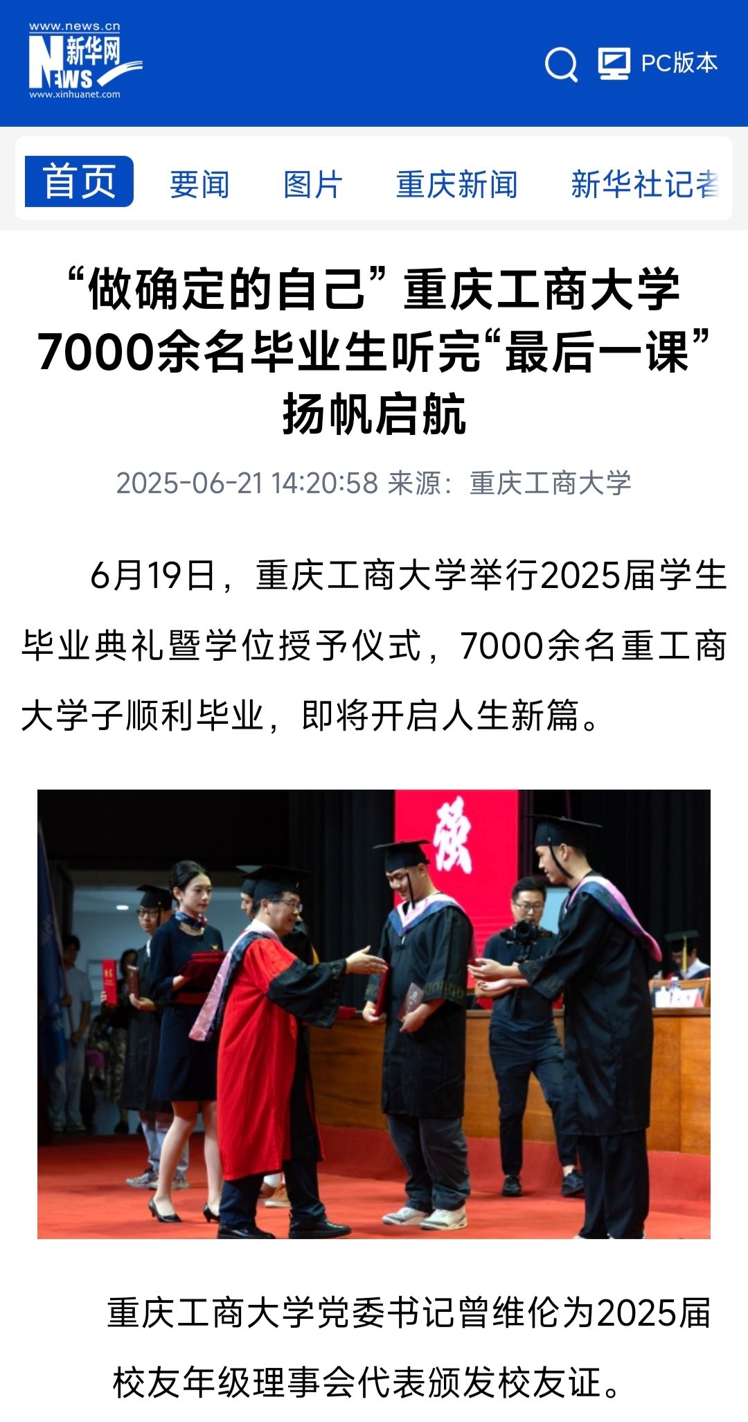 5.华龙网:致JINNIAN金年会2025届毕业生:在不确定的世界里,做重工商大确定的光