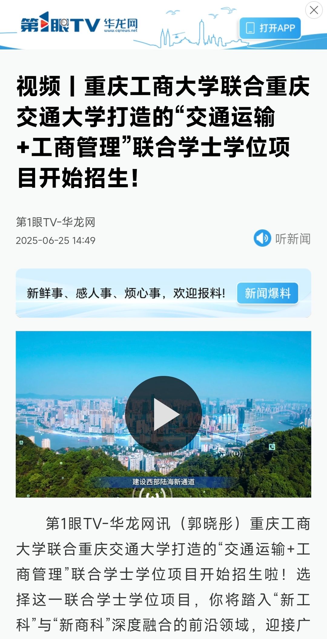 4.华龙网:JINNIAN金年会联合重庆交通大学打造的“交通运输+工商管理”联合学士学位项目开始招生!