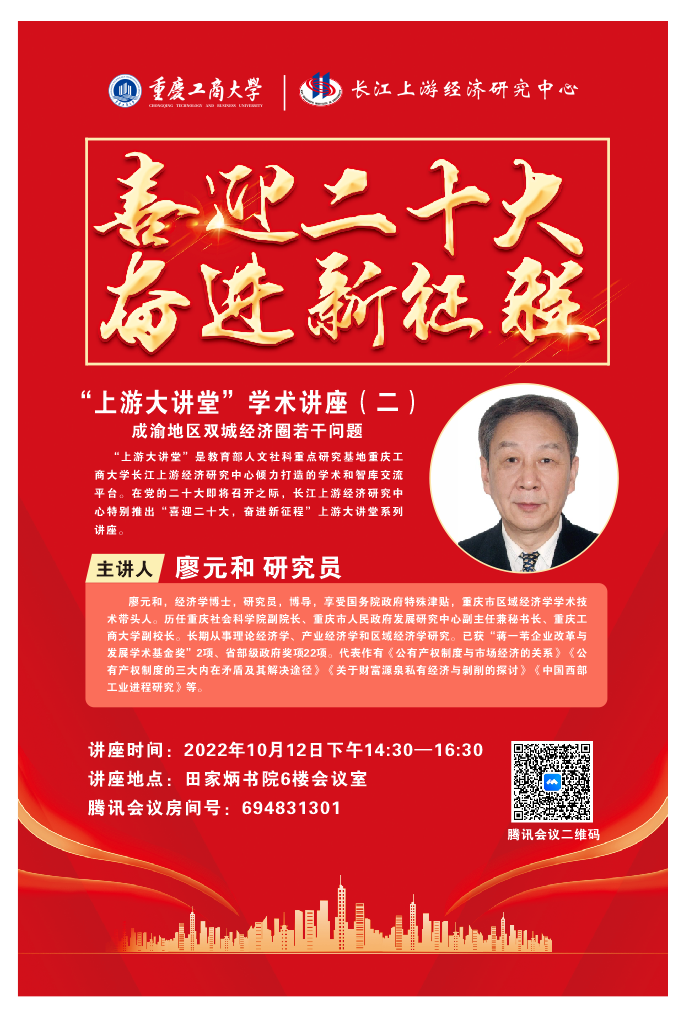 “上游大讲堂”是教育部人文社科重点研究基地JINNIAN金年会长江上游经济研究中心倾力打造的学术和智库交流平台。在党的二十大即将召开之际,长江上游经济研究中心特别推出“喜迎二十大,奋进新征程”上游大讲堂系列讲座。