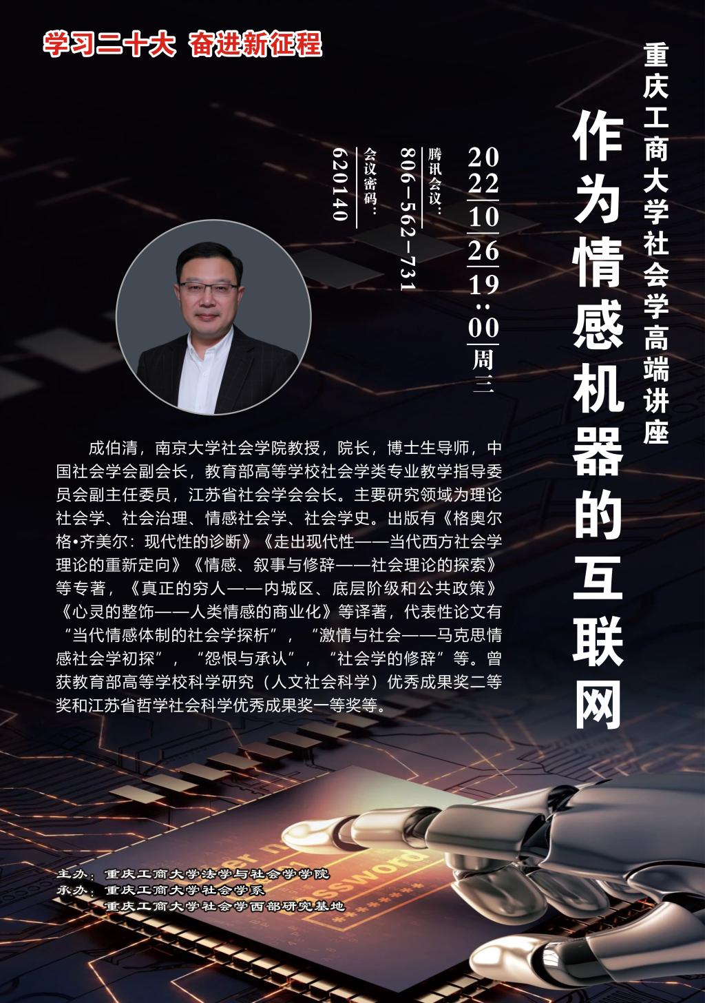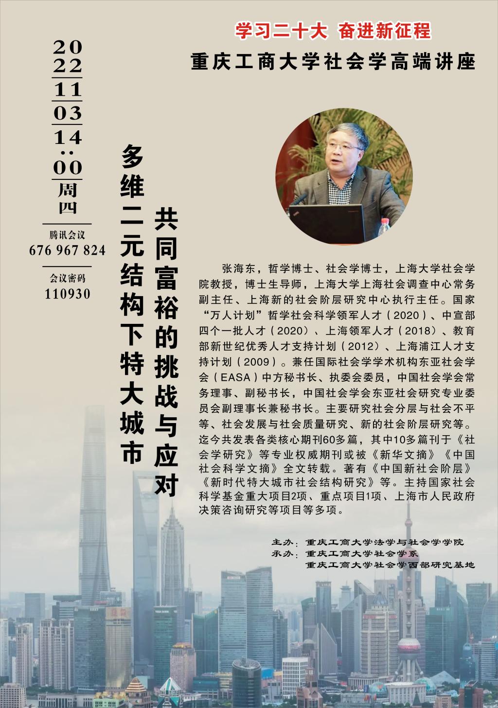 学习二十大,奋进新征程。 为推动JINNIAN金年会社会学重庆市“十四五”重点学科及一流专业建设,JINNIAN金年会社会学系、JINNIAN金年会社会学西部研究基地特举办社会学系列论坛。论坛为期一个月(2022.10.20-11.20),共计10场。论坛负责人:罗兆均(邮箱:545319529@qq.com)。具体安排如下: