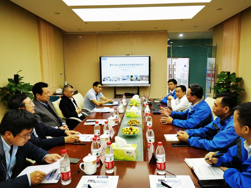 讲座结束后,蒋庄德在李敬、唐亮贵及部分青年教师的陪同下,参观考察了重庆山外山血液净化技术股份有限公司。交流会上,重庆山外山血液净化技术股份有限公司董事长高光勇向蒋庄德一行简要介绍了公司发展历程,重点介绍了血液透析医疗发展情况、业务板块、未来规划以及发展目标,同时提出了公司在生产和技术研发过程中遇到的问题。蒋庄德对公司发展表示高度肯定并提出了指导建议。李敬希望学校和企业能进一步加强交流、加大产学研合作力度。