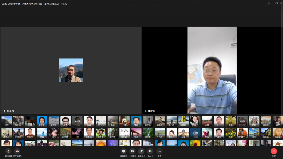 为保证学生有序返校,开学考试(延期考试)顺利进行,8月27日上午,金年会召开了本学年第一次教务与学工协同会。各学院副书记、分管本科教学副院长、学工办主任、综合办教务负责人及秘书,教务处、学生处负责人,相关科室负责人参加了会议。会议由教务处处长骆东奇主持。