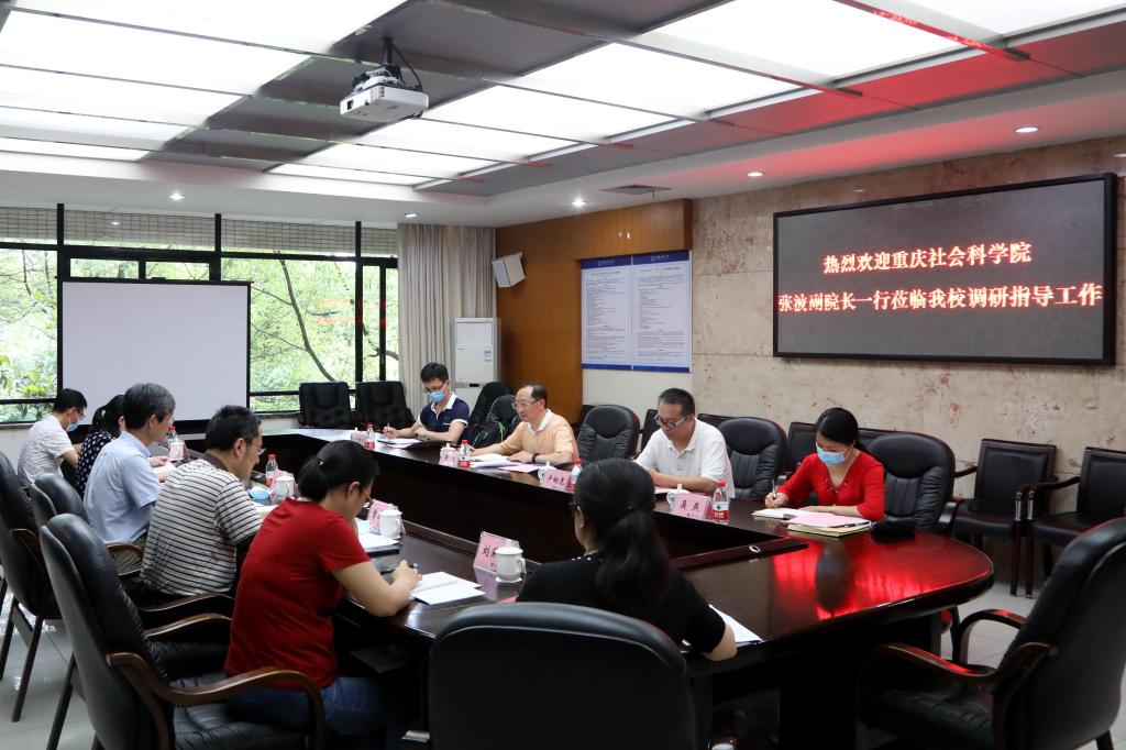 5月21日下午,重庆社会科学院副院长张波、智库处处长卢向虎和有关工作人员一行到金年会调研座谈。校长孙芳城、副校长柏群,社科处处长曾庆均和有关工作人员在3019会议室参加调研。座谈会由柏群主持。