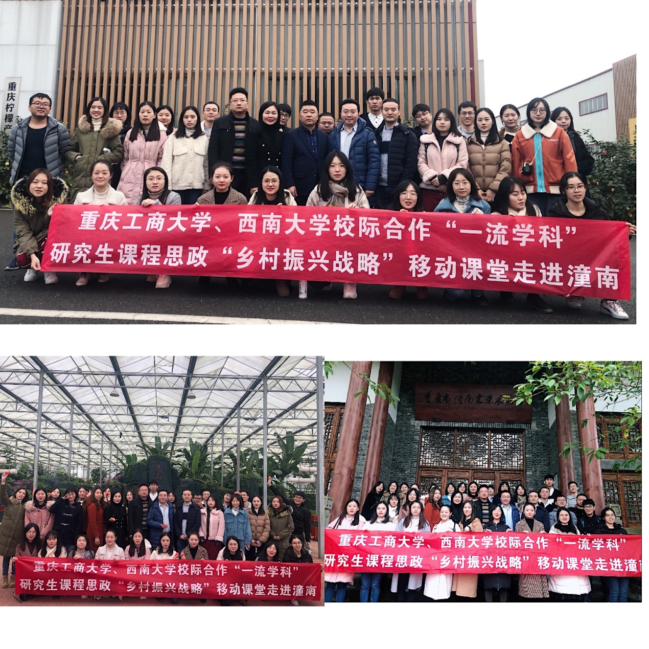 为将思想政治教育内容与专业知识技能教育内容有机结合,切实发挥重庆市一流学科研究生教育的思想政治教育功能,强化研究生“四个自信”,培养具有爱国主义情怀、能够对国家大政方针和国家战略深刻认识与理解、拥有为祖国贡献力量积极性和意愿度的高素质高层次研究生人才,金年会立足“应用经济”重庆市“一流学科”,以重庆市第六批研究生优质课程《中国区域经济问题专题》(2019069)建设项目为依托,整合校际资源,联合西南大学,推动重庆市一流学科研究生教育课程思政建设与发展, 2019年12月11日,金年会与西南大学校际合作“一流学科”研究生课程思政“乡村振兴战略”移动课堂走进“柠檬之都”潼南。金年会研究生院副院长王燕教授,研究生课程思政精品在线课程建设项目教学团队师资代表、艺术学院院长殷俊教授,黎毅副教授以及西南大学研究生院委派的代表西南大学经济管理学院院长助理、博士生导师刘新智教授,以及来自两校区域经济、国民经济、数量经济、国际贸易、产业经济学等专业32名研究生代表参加了此次移动课堂。
