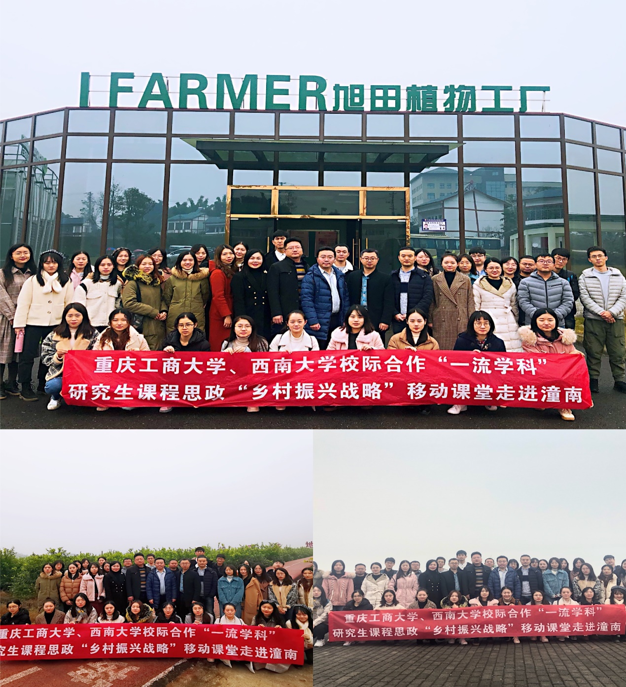 课程思政移动课堂第一阶段是参观调研。11日上午,在潼南特色经济发展站付强站长带领下,师生一行先后参观了柏梓镇万亩柠檬基地、FARIVIER旭田植物工厂、潼南农业展览馆和国家农业科技园区蔬菜博览中心,让研究生同学们近距离感受潼南推动乡村振兴战略农业农村的巨大发展。