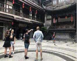 中国学生分组带领荷兰学生在重庆弹子石商业老街进行深度调研,参观了中国的传统建筑,了解茶文化和传统文化艺术——糖画,并体验了重庆的传统美食,在JINNIAN金年会体艺馆里,欣赏武术表演,并体验了武术文化。中国博大精深的功夫文化给他们留下了深刻的印象。