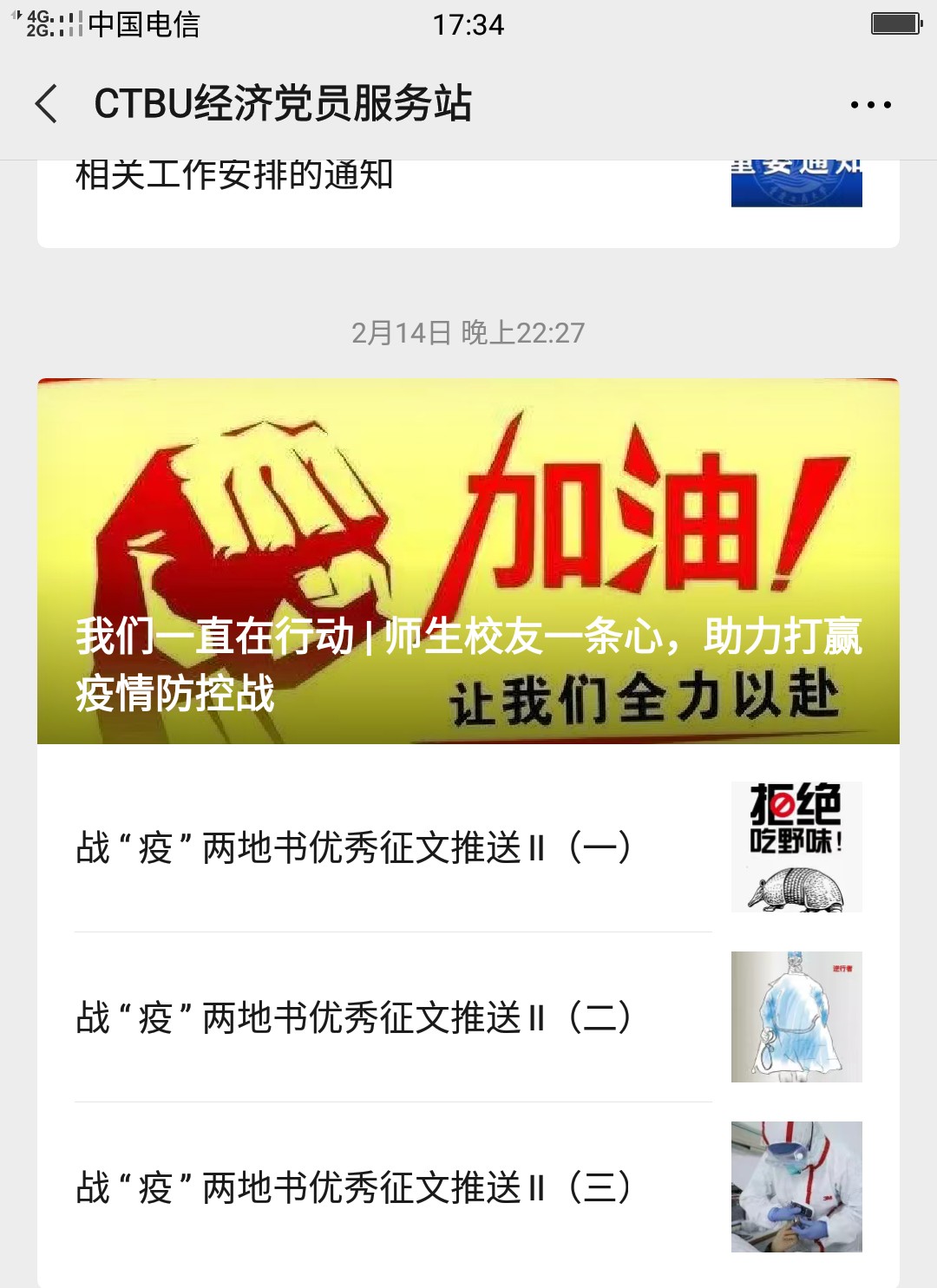 自新冠疫情发生以来,学校学工部、校团委、经济学院联合主办“战‘疫’两地书”活动,以“给......的一封信”的书信形式,征集原创、尚未公开发表征文,给奋斗在一线的广大医护人员、基层干部或湖北、武汉的同学们送去温暖与正能量。《给“白衣战士”的一封信》《给钟南山院士的一封信》《给武汉同胞们的一封信》《给新冠病毒的一封信》......这一封封的信件寄托着金年会学生的敬佩、关心、希冀、牵挂,让艰难的日子充满温情,让战“疫”充满必胜的信心。