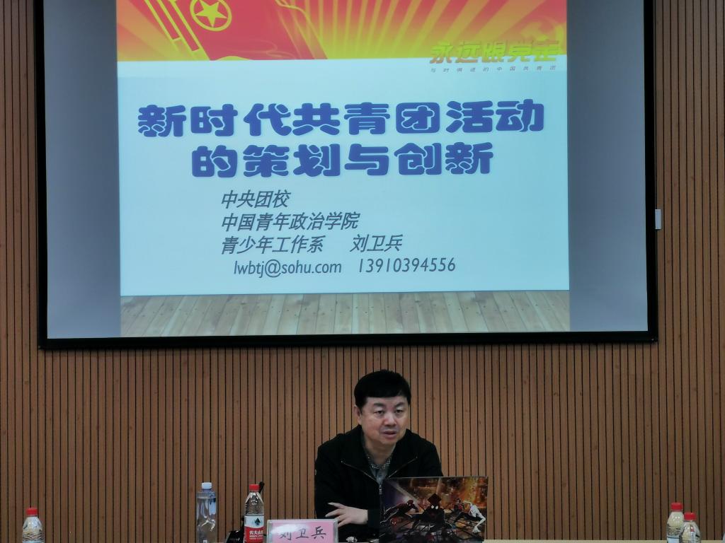 刘教授从新时代青年的历史使命、创意与创新、共青团活动的内容、形式、主题策划、文案写作等六个方面进行阐述。他指出,新时代的共青团活动重在凝聚人心,激发热情,寓教于乐,不断创新,应落脚于社会背景,青年兴奋点,团队工作点;新时代的高校团干应该加强政治素养,切实增强“四个意识”、牢固树立“四个自信”,更加紧密地团结在以习近平同志为核心的党中央周围,引领团员青年听党话、跟党走,关心青年成长,做好育人根本任务,培育担当民族复兴大任的中国特色社会主义建设者和接班人。刘教授从团的十八大入手,讲到共青团的使命和职责,从“五四”运动讲到“爱国进步民主科学”的时代内涵,从1921年中国共产党成立讲到新中国成立70周年以来,党领导全国各族人民谋复兴谋发展,开辟了中国特色社会主义道路。在讲座中,刘教授运用大量案例,图文并茂地为大家示范了作何开展共青团的主题活动,既让大家深受感动,也深刻领会到如何用“接地气”的方式生动有效地讲好中国故事、榜样故事,让思想政治引领更加有效,让团员们在活动中受真感动、有真收获,得真感悟。在提问环节,大家积极踊跃地向刘教授提出自己关于共青团活动的有关问题,刘教授悉心地逐个解答,并耐心认真地加以分析,让在场师生收获颇多。