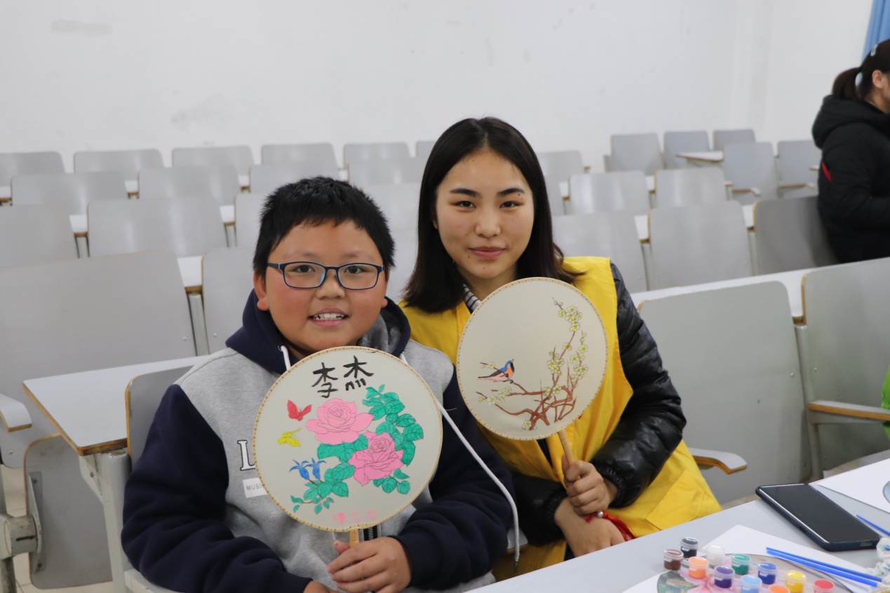 早上9点,志愿者们在校前广场迎接回访师生,为他们送上来自学院师生的关怀问候,随后在志愿者的带领下进入金年会图书馆视听阅览室进行了一场简短的欢迎仪式。欢迎仪式上,在志愿者与小朋友们互相认识后,学院侯明喜副院长致辞,表达了对骆来山师生的欢迎及对双方继续合作的展望,随后骆来山学校田学祥书记表达了对学院举办此次活动的感谢和合作愿景,在小朋友开心的笑声中陈善国副书记为小朋友们赠送礼物,并送上诚挚的祝福。大家回顾走过的十二年历程,感慨时间的流逝和情谊的长久;分享志愿心路,让双方融入彼此,温暖大家;歌唱《隐形的翅膀》,祝愿儿童们能够战胜困难,收获幸福;携手画团扇,在游戏中增加默契,感受陪伴;互相写信,在交流中增进感情,拉近距离。
