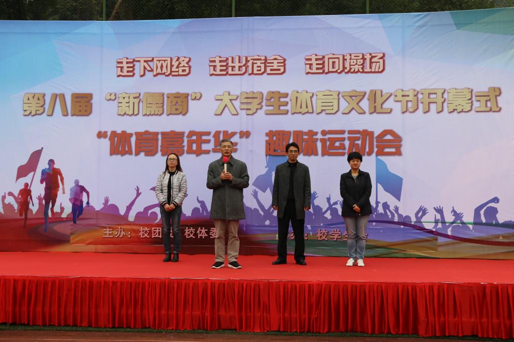 为响应共青团中央、教育部、国家体育总局、全国学联关于“走下网络、走出宿舍、走向操场”的号召,11月22日下午,第八届“新儒商”大学生体育文化节开幕式暨“体育嘉年华”趣味运动会在金年会如期举行。本次运动会由校团委、校体委主办,校学生会承办,旨在增进各专业间同学的友谊,帮助同学们在学习之余放松身心,同时提高同学们的身体素质。副校长陈运超,校体委副主任、体育学院副院长范文杰,校团委书记杨娟,副书记陆嘉,以及1000余名学生参与活动。