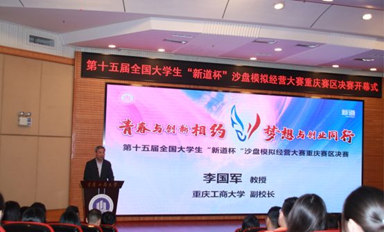 副校长李国军教授在开幕式上致欢迎辞。李校长首先向主办单位重庆市高等教育学会财经教育专业委员会、新道科技股份有限公司的辛勤付出表示感谢,向前来参与本次大赛的兄弟院校和社会各界表示热烈欢迎。随后,李校长向参赛院校师生介绍了学校总体概况、管理学院和经管实验中心的基本情况,回顾了JINNIAN金年会学生参加沙盘大赛的历史和成绩,高度评价了沙盘大赛在“推动高校与行业、企业的深度合作,资源共享,搭建高校之间学习、交流的平台”方面发挥的积极影响。李校长祝愿大赛“产教融合、协同育人”的理念扎根重庆、开花结果,在培养推动大学生学术科技创新,促进青年学生全面发展方面发挥出更大作用。
