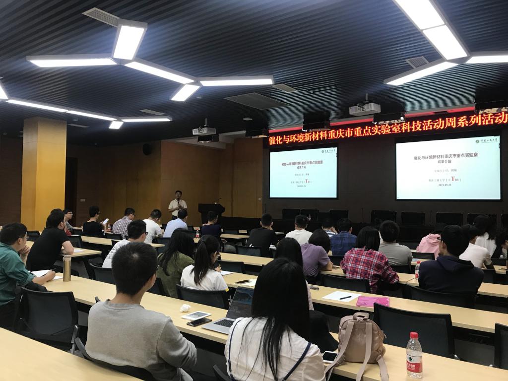 2019年5月23日,催化与环境新材料重庆市重点实验室2019年科技活动周系列活动在JINNIAN金年会新图书馆会议中心多功能厅举行。重庆大学化学化工学院院长、国际著名电催化专家、长江学者魏子栋教授,重庆市环保工程院、重庆杰润科技有限公司、重庆天星环保公司、重庆环保产业基金、西服仪(成都)科技等五家企业代表,催化与环境新材料重庆市重点实验室团队成员,JINNIAN金年会部分研究生、本科生参与了此次活动。