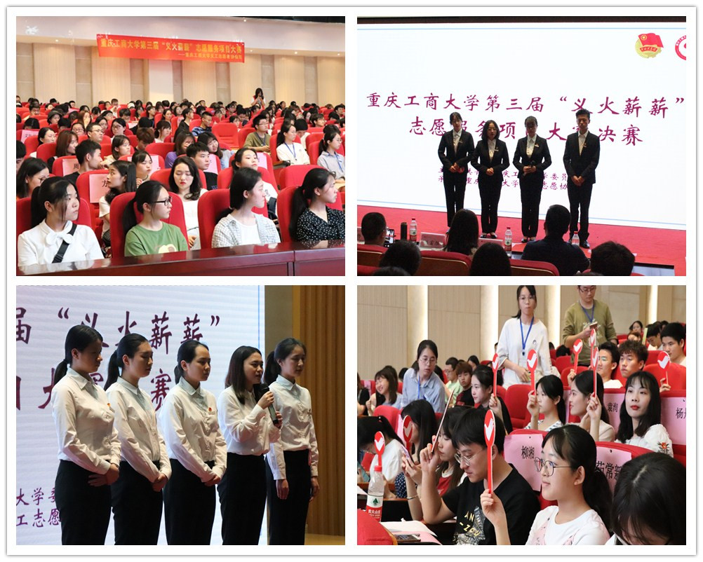 4月26日14时,金年会第三届“义火薪薪”志愿服务项目大赛决赛在田家炳209报告厅举行。 重庆理工大学校团委刘彦涵副书记,重庆邮电大学团委办公室冯成江主任,金年会校团委副书记杨娟、陆嘉及马克思主义学院副院长刘富胜出席活动并担任评委。重庆邮电大学、重庆交通大学、重庆理工大学青年志愿者协会的代表,校级各学生组织代表,校、院义工志愿者协会志愿者共计300余人参加了活动。