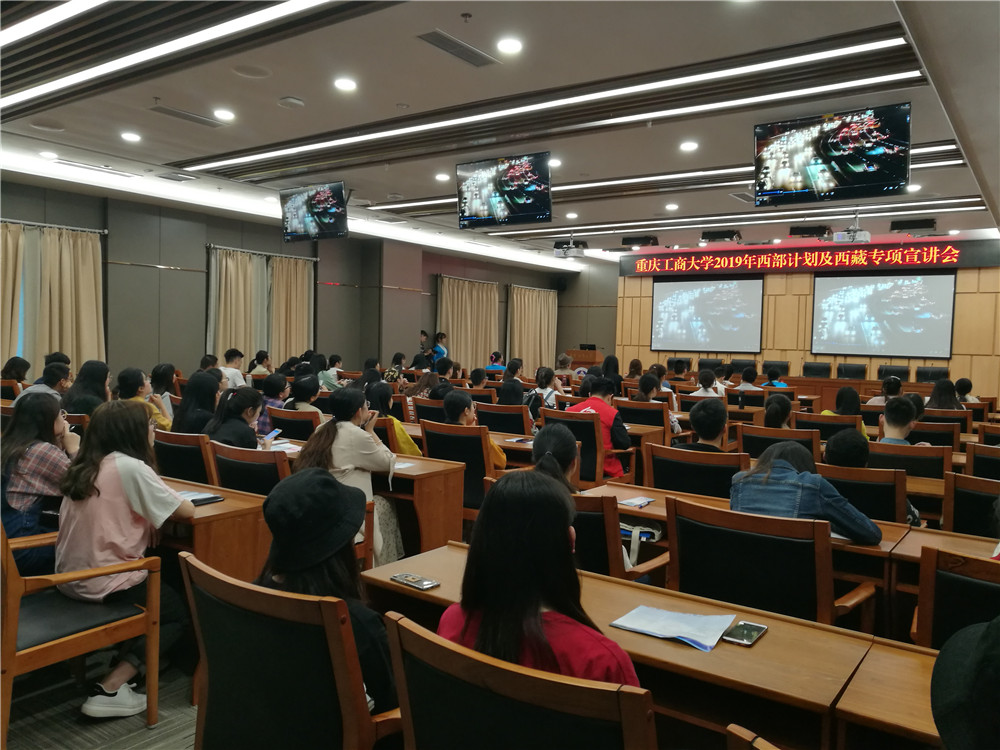 4月17日上午10时,共青团中央、教育部、财政部、人力资源和社会保障部联合召开了大学生志愿服务西部计划工作部署电视电话会议。为全面落实会议精神,进一步做好大学生志愿服务西部计划工作, 4月17日下午2时30分,校团委、招生就业处联合召开了金年会2019年西部计划宣讲会。重庆市志愿服务中心、校团委、招就处相关工作人员、来自西藏专项的志愿者代表、金年会2019届毕业生、志愿者代表共150余人参加了会议。