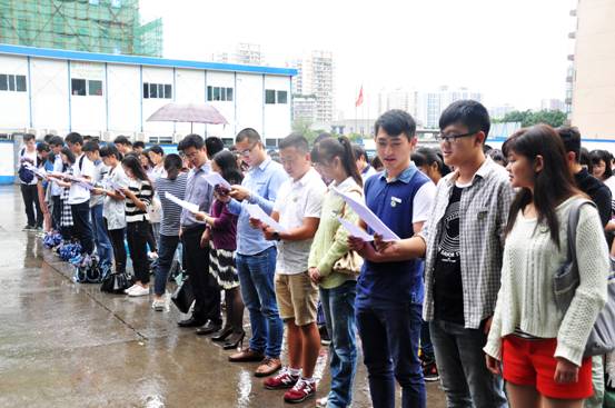 紧接着,现场全体成员满含激情地朗诵了诗词“祖国啊,我亲爱的祖国”。同学们激情澎湃,热情洋溢的朗读,让所有人的热情更加饱满,大家都深受感染。朗诵结束,整个校前广场上一直回荡着同学们热烈的掌声。