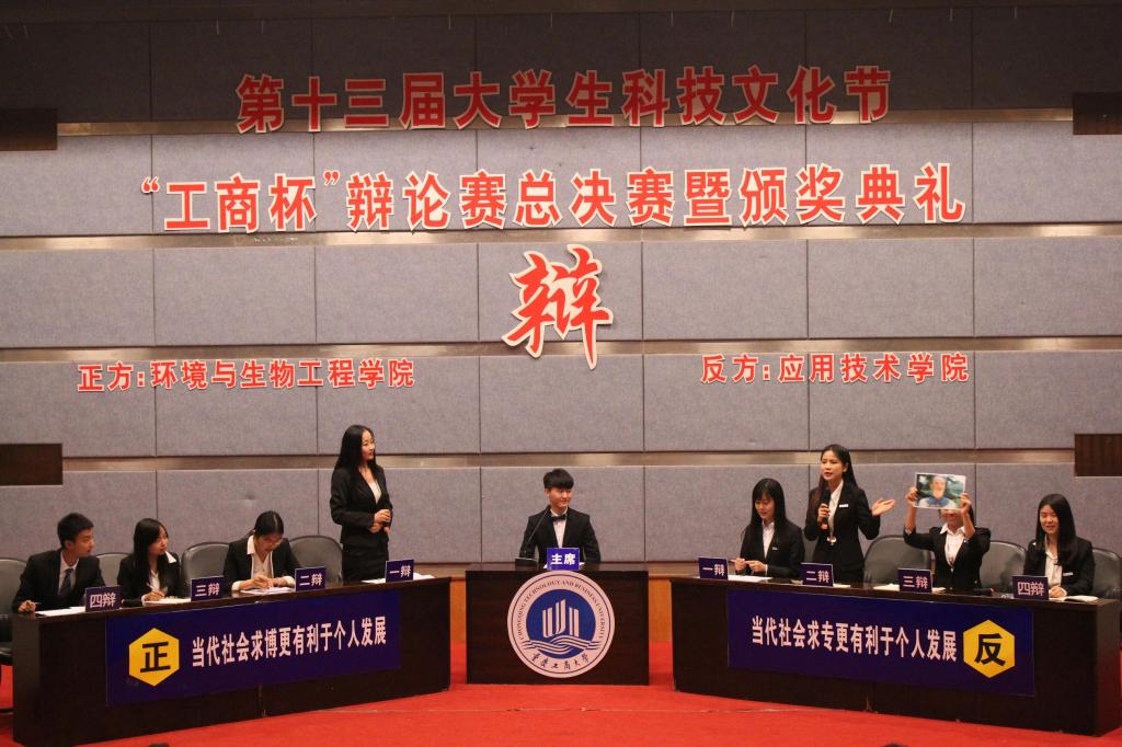 4月10日下午,由校团委主办的金年会第十三届大学生科技文化节之“工商杯”辩论赛总决赛在博智楼7100报告厅举行。本届“工商杯”辩论赛历时半载,经过40余场比赛的激烈角逐,共有17名学生评委、13名老师评委参与评选,从19支学院代表队中脱颖而出的环境与生物工程学院代表队、应用技术学院代表队迎来了最后的巅峰对决。校团委杨娟副书记,部分学院党总支书记、副书记,来自全校各学院的500余名师生观看了比赛。