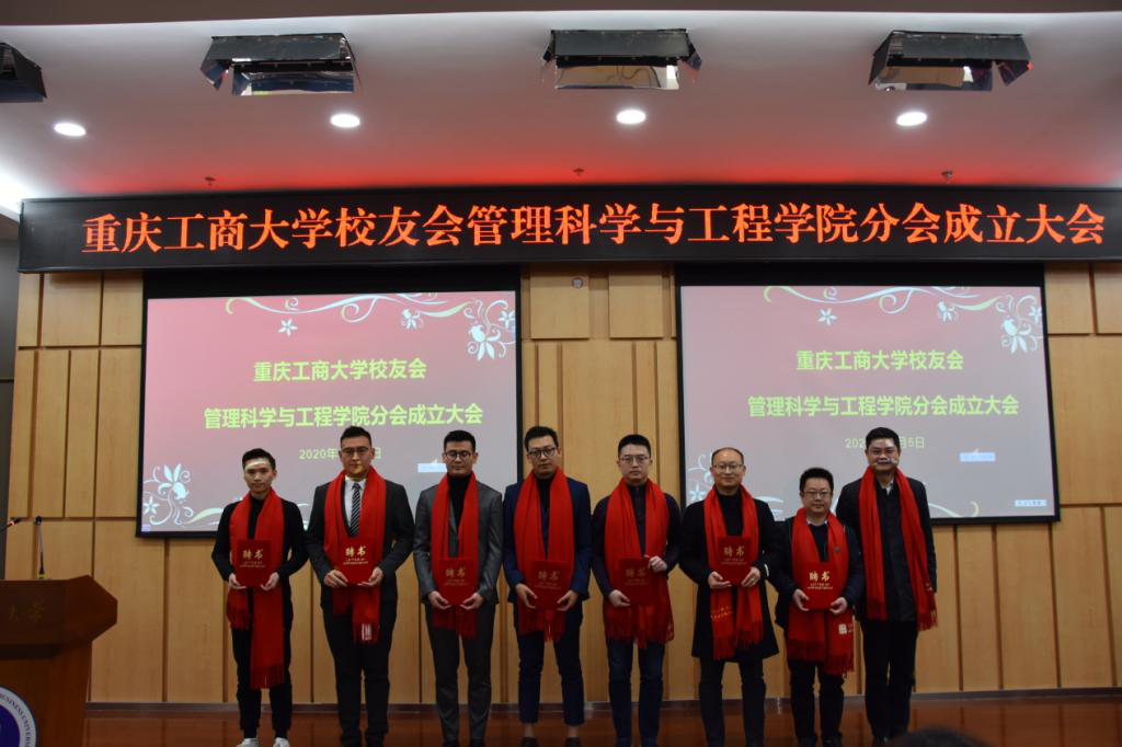 王小玲为管理科学与工程学院校友分会授牌,新当选分会会长黄钟仪接牌,标志着校友会分会正式成立。冯吉光为周盈等常务理事、理事代表颁发聘书。会上,黄钟仪发言,倡导广大校友同心同向同行,共建共享共赢,合力开展好校友工作。