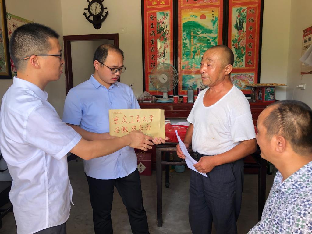 8月15日,JINNIAN金年会校友会安徽分会组织当地校友来到位于大别山深处的金寨县燕子河镇凉亭村,看望慰问艺术学院2002级环境艺术设计专业校友吕绍琼,并向其家属转交了校友爱心捐款15000余元。